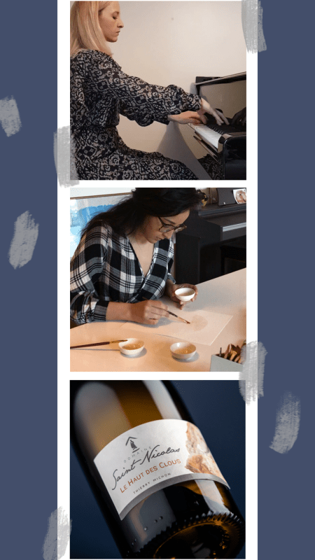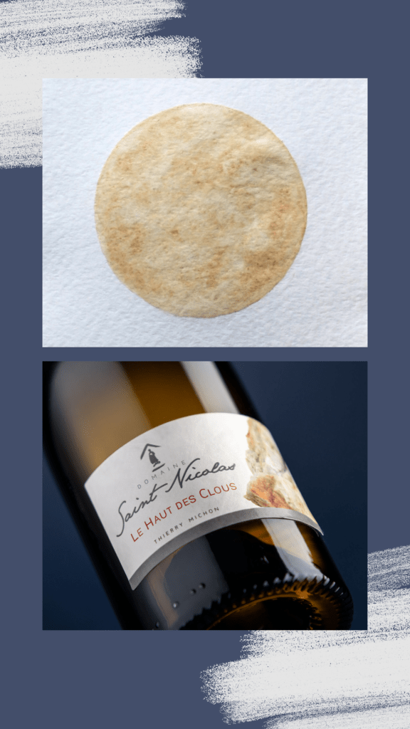 Quant à Sabrina, elle jette son dévolu sur la Cuvée « Le Haut des Clous » du Domaine Saint-Nicolas. Son travail porte sur le vin en biodynamie et elle décide donc de ne pas fixer la couleur pour la laisser évoluer naturellement. Cela donne un tableau vivant que l’on redécouvre à chaque fois… Ce pur chenin blanc exprime un nez d’ananas et d’écorce de pamplemousse, sa bouche est dense avec une belle minéralité et une finale miellée. Pour en savoir davantage, c’est par ici : https://www.domainesaintnicolas.com/fr-cuvees